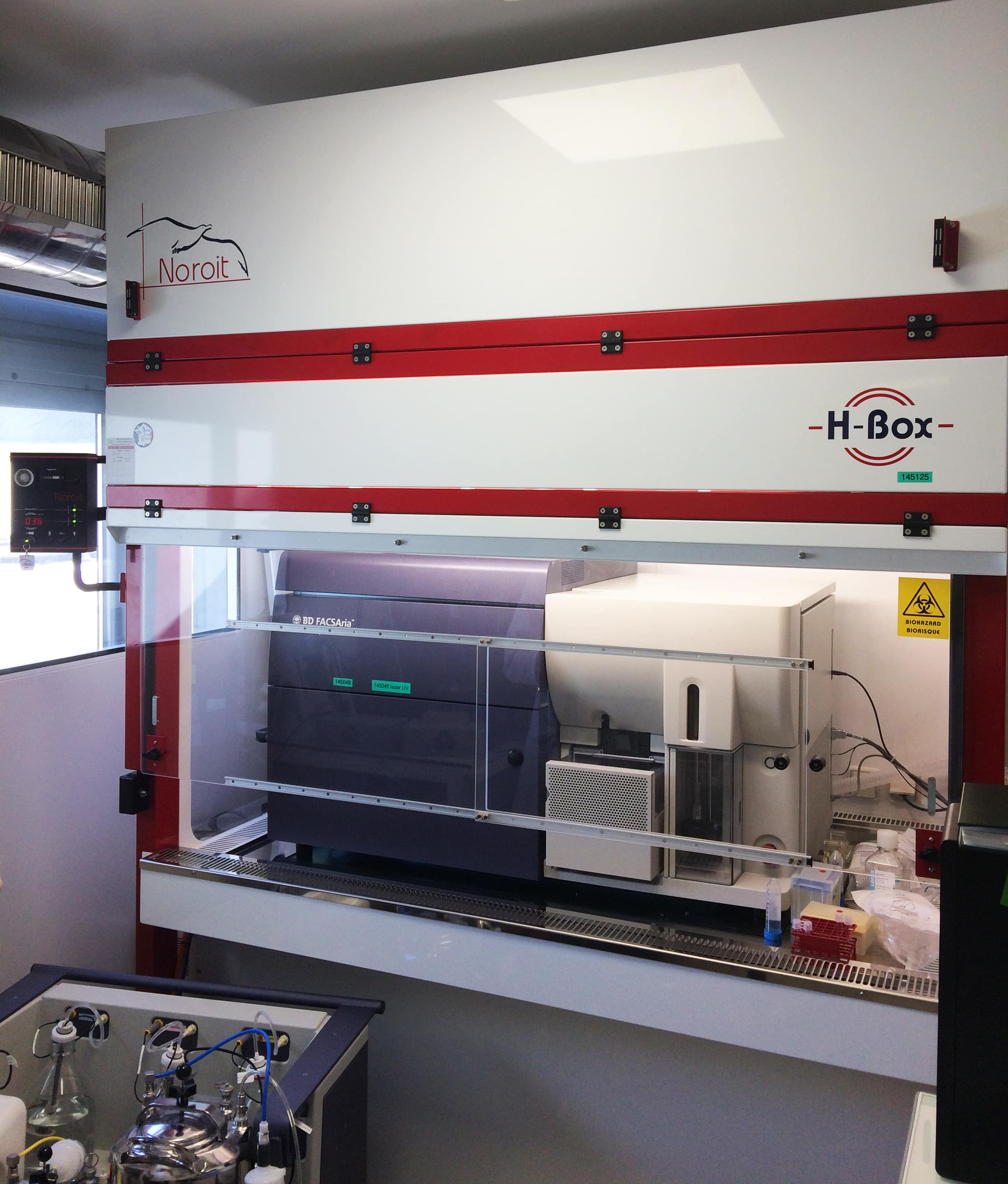 Le H-Box de Noroit est une gamme de postes de sécurité conçus par l’entreprise Noroit pour la protection de vos robots manipulateurs, votre personnel et de l’environnement. Cet énorme appareil est disponible en plusieurs modèles à choisir selon les types d’appareils qu’il est susceptible d’héberger dans votre laboratoire. Ainsi, le H-Box de Noroit est programmé pour abriter tous les genres de robots et de cytomètres de flux afin de garantir une utilisation sécurisée au sein de votre laboratoire. C’est donc la machine indispensable lors des applications de séquençage médical dans le cadre d’une plateforme de cytométrie ou d’automates.