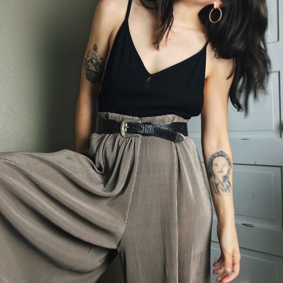 - Pantalon fluide et top court : la silhouette idéale pour celles qui ont la taille marquée